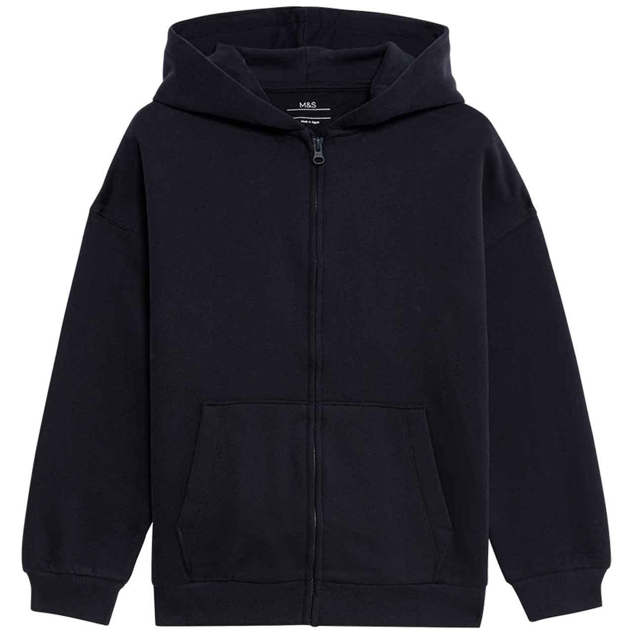 This M&S Navy Hoodie is designed for comfort and easy upkeep, suitable for children aged 9-10 years. Crafted from a cotton-rich blend, it offers a soft feel alongside necessary durability for active youngsters. It is a practical staple for everyday layering throughout the year.