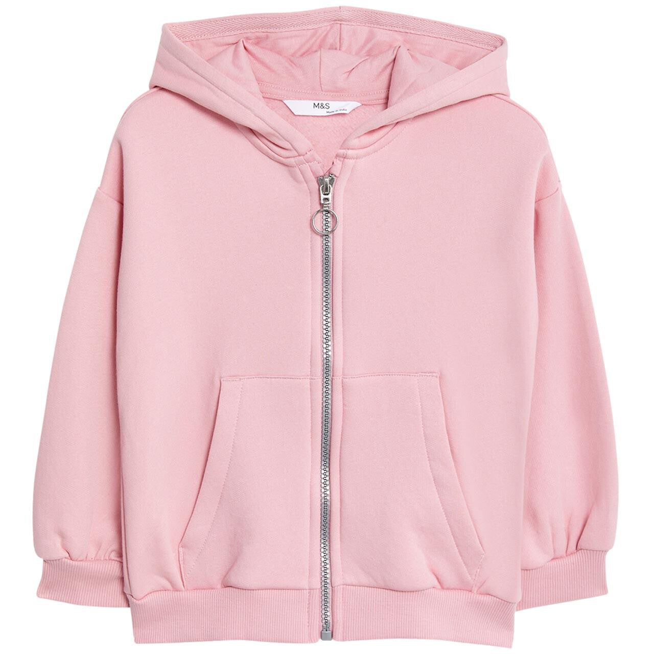 This M&S cotton-rich hoodie is an essential piece for a child's everyday casual wardrobe. Designed for comfort, this light pink garment offers a relaxed regular fit suitable for various activities.