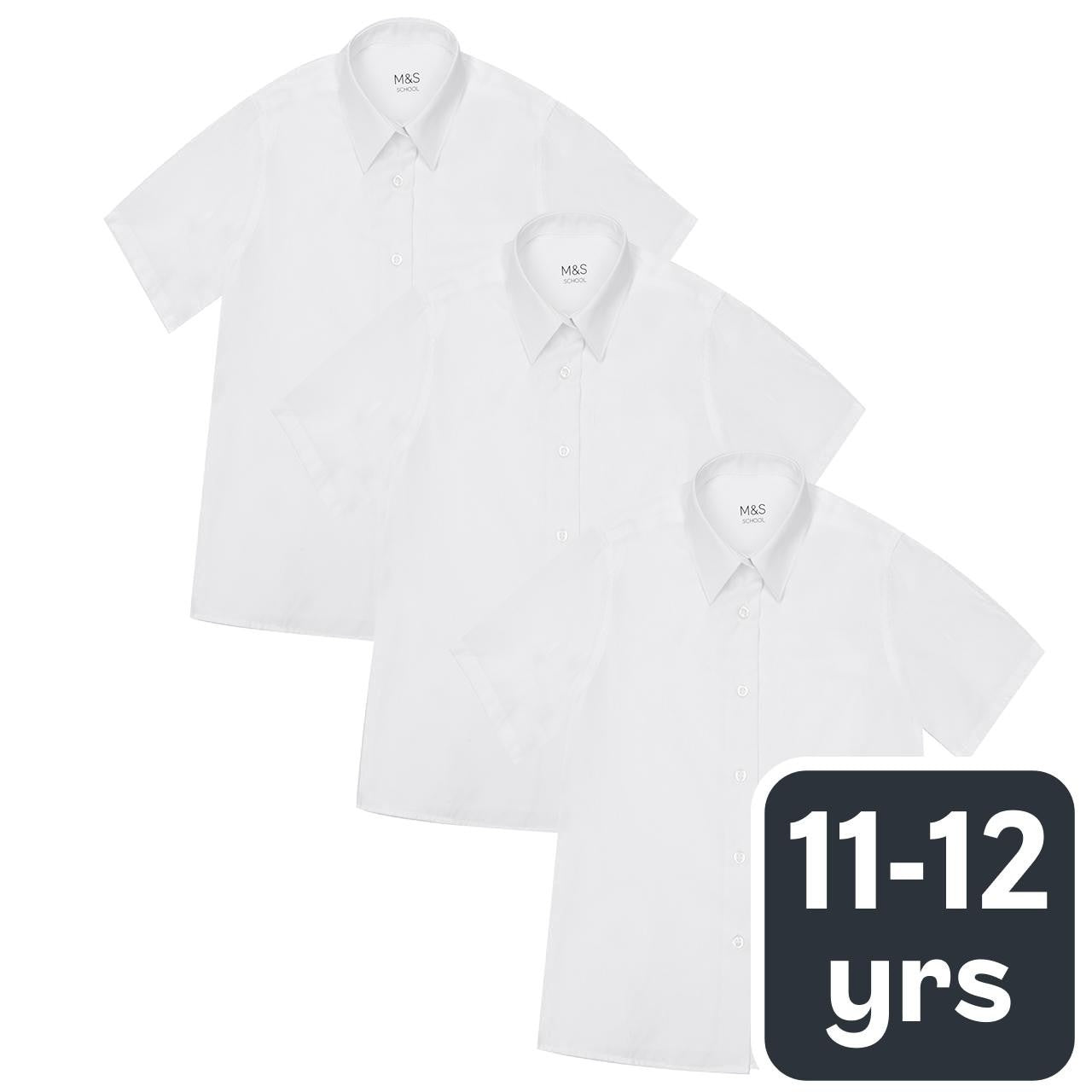 M&S Girls Easy Iron School Blouses, 11-12 Years, White