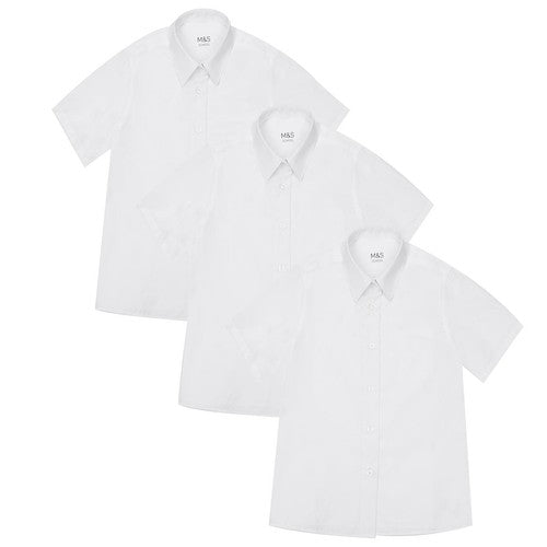 These M&S short sleeve school shirts arrive in a handy, extra value three pack, perfect for the busy school week. They are designed with timesaving Easy to Iron technology, meaning a quick press prepares them for wear. The cotton used for this staple garment is always sustainably sourced, reflecting responsible material commitment.