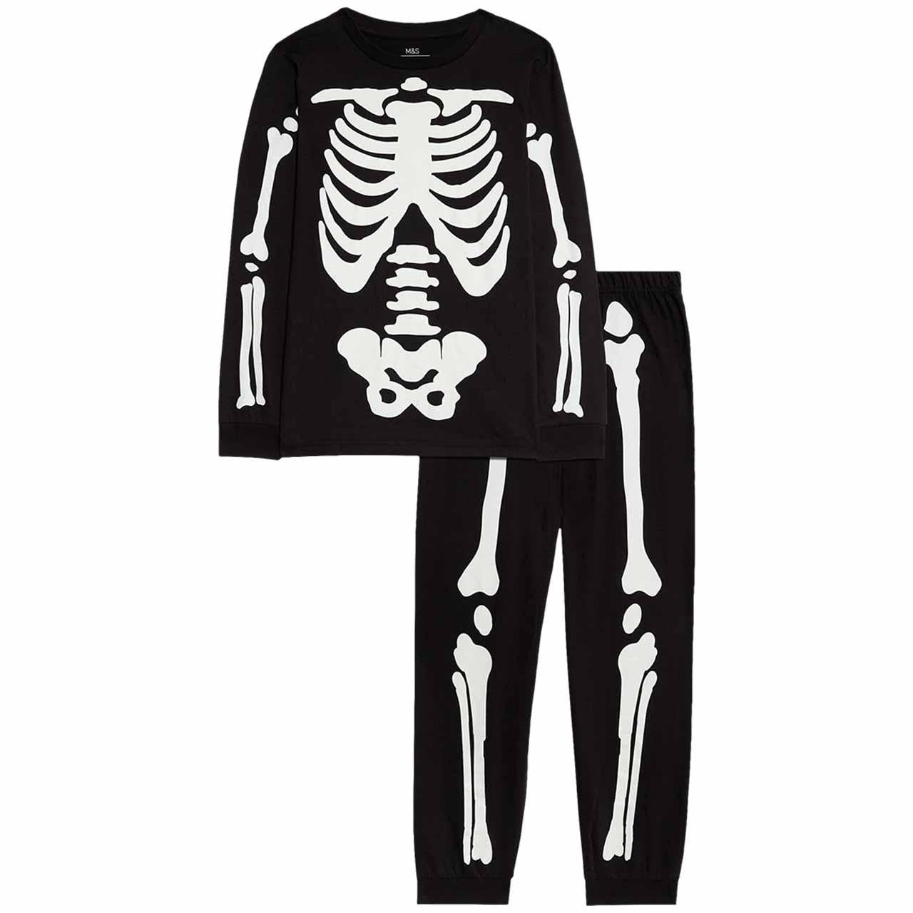 Keep your child comfortable during the autumn season with these fun M&S Skeleton Pyjamas, sized specifically for 6-7 years. This two-piece set features a distinct black and white skeletal print ideal for festive Halloween wear. They offer a warm, relaxed fit for sleeping or casual lounging throughout the cooler months.