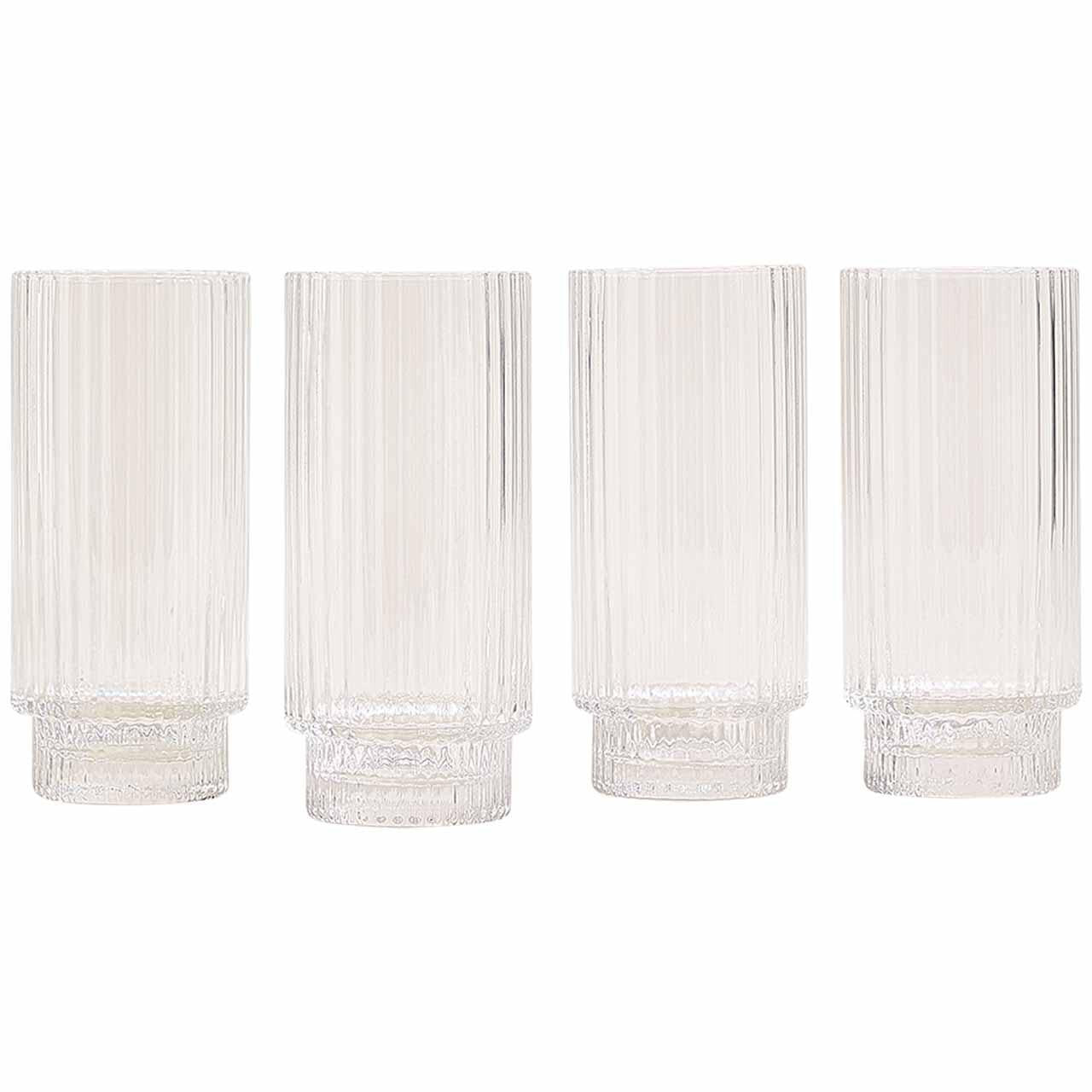 Enhance your serving collection with this set of four Celine highball glasses from M&S Handmade. Each piece is individually crafted, showcasing a beautiful ribbed design in coloured glass. The unique ridged stem provides a distinctive architectural element reminiscent of classic styling.