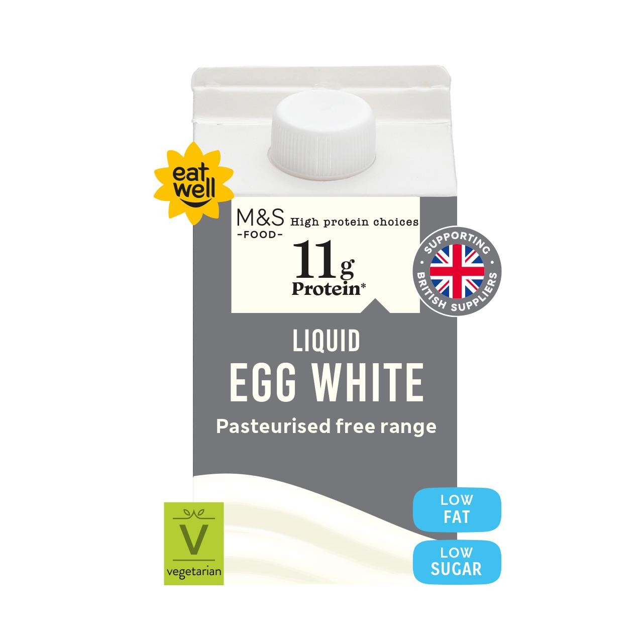 This M&S product offers pasteurised, free-range liquid egg white ready for immediate culinary application. It is a convenient ingredient ideal for those tracking nutritional intake due to its low fat and low sugar composition. This versatile component simplifies many recipes that require separated egg whites, saving you prep time.