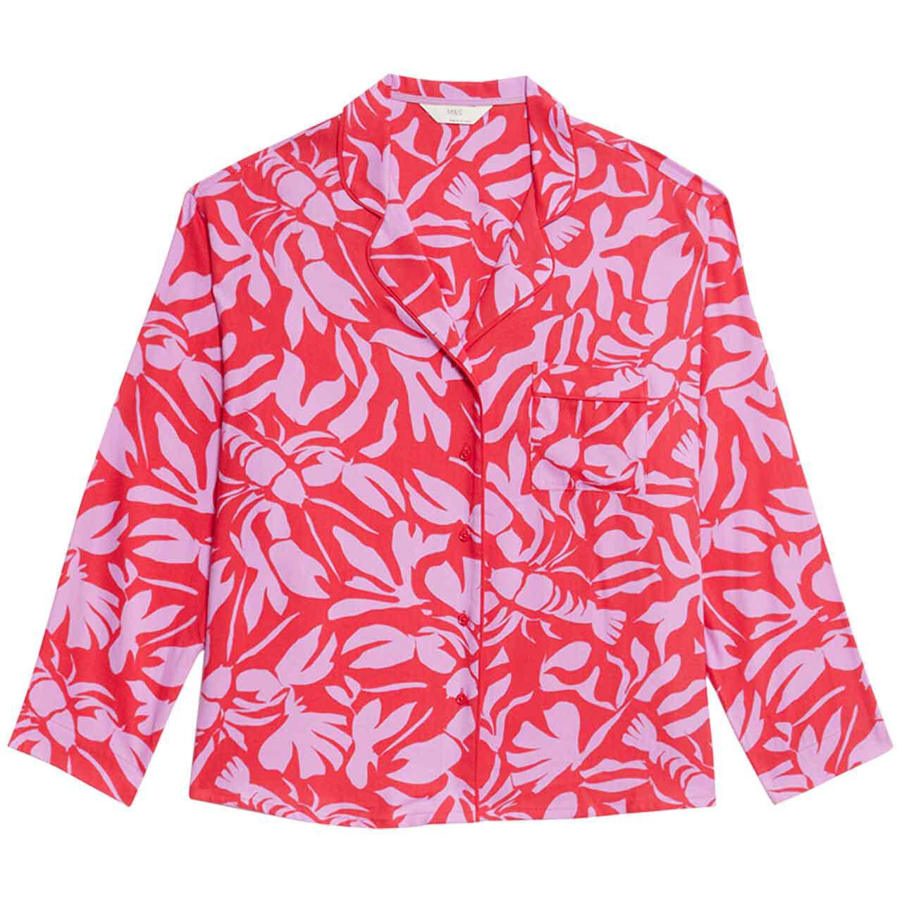 This cotton-blend pyjama top from M&S Collection adds a fun element to your sleepwear collection with its bright lobster print. Designed for comfort, it features a regular fit for easy wearability throughout the night.