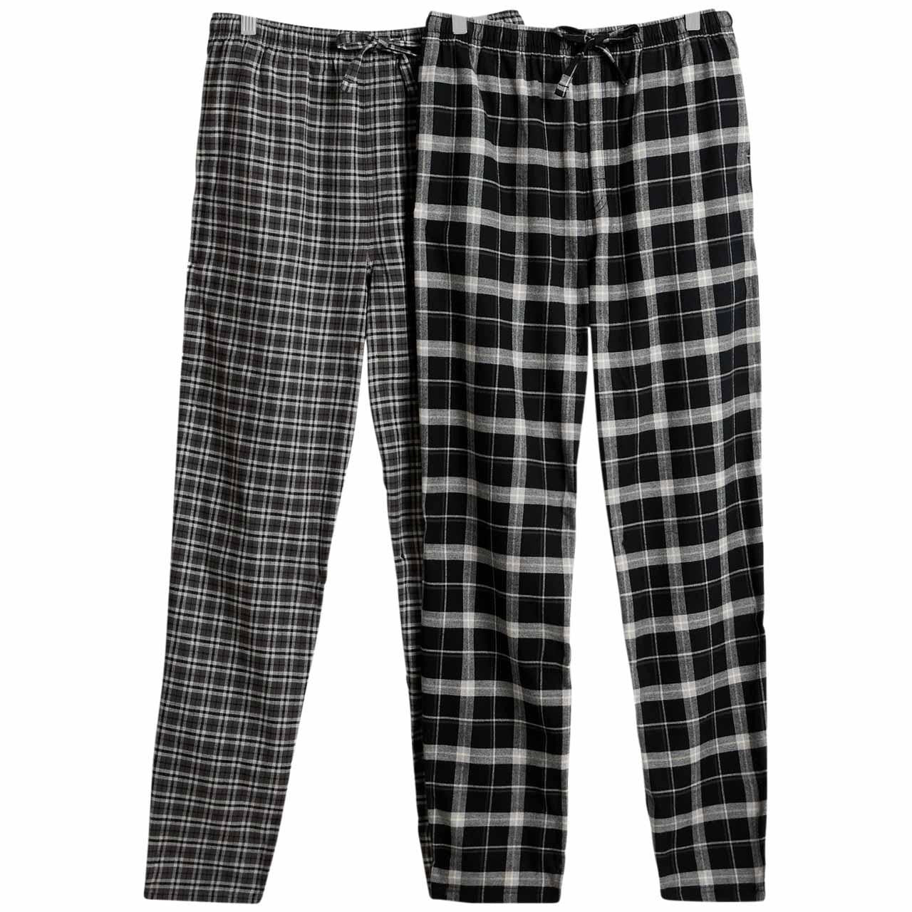 This set includes two pairs of M&S men's pyjama bottoms in size XL, designed for superior comfort during rest or relaxation. Both options feature classic checked designs, one in black and the other in a charcoal tone, offering excellent versatility. The garment construction utilizes 100% cotton, perfect for soft brushed cotton pyjamas.