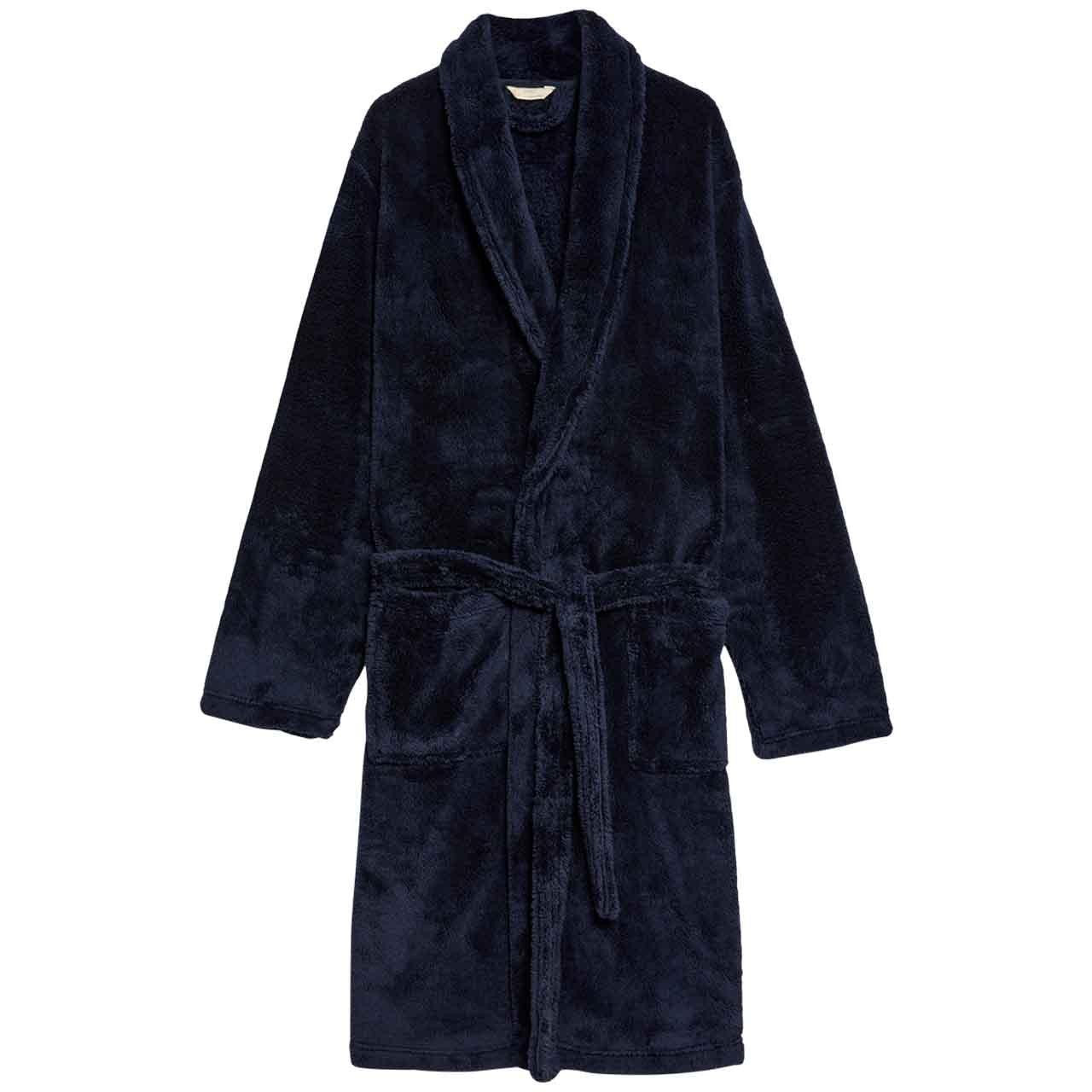 This substantial navy dressing gown is a simple yet essential addition to your relaxation apparel collection.