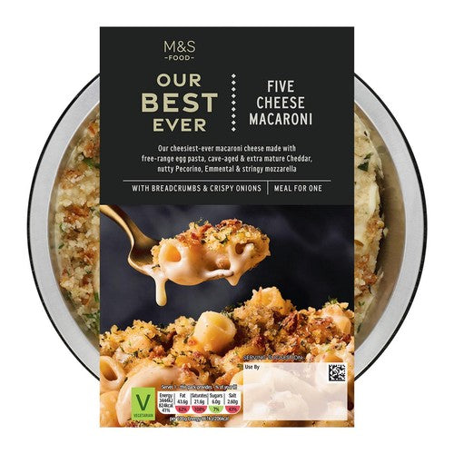Enjoy this rich and satisfying M&S single serving macaroni cheese, expertly prepared for maximum flavour. This convenient dish features free-range egg pasta coated in a luxurious, five-cheese sauce. It is designed to be ready from the oven in just twenty minutes, offering a comforting meal option.