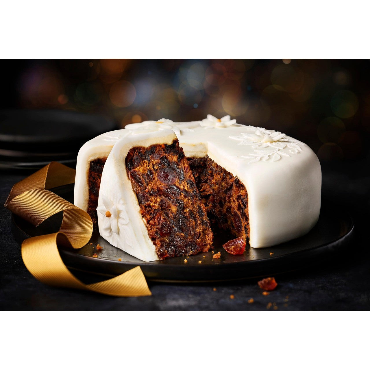 • Finished with a layer of rich marzipan and smooth, decorative icing.
