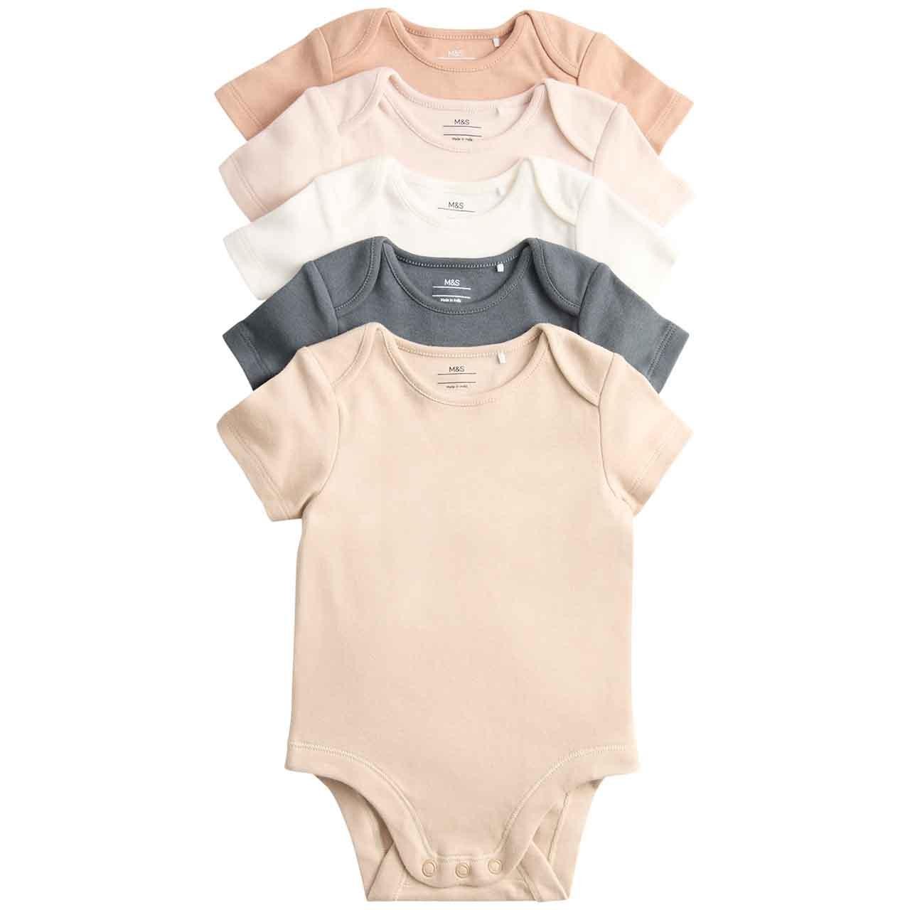 These pure cotton bodysuits are an essential addition to your baby's wardrobe. This convenient pack provides five short-sleeved options, offering a selection of useful colours for daily wear. The soft material ensures comfort for your little one throughout the day and night. Changing becomes simpler with carefully designed features for easy use.