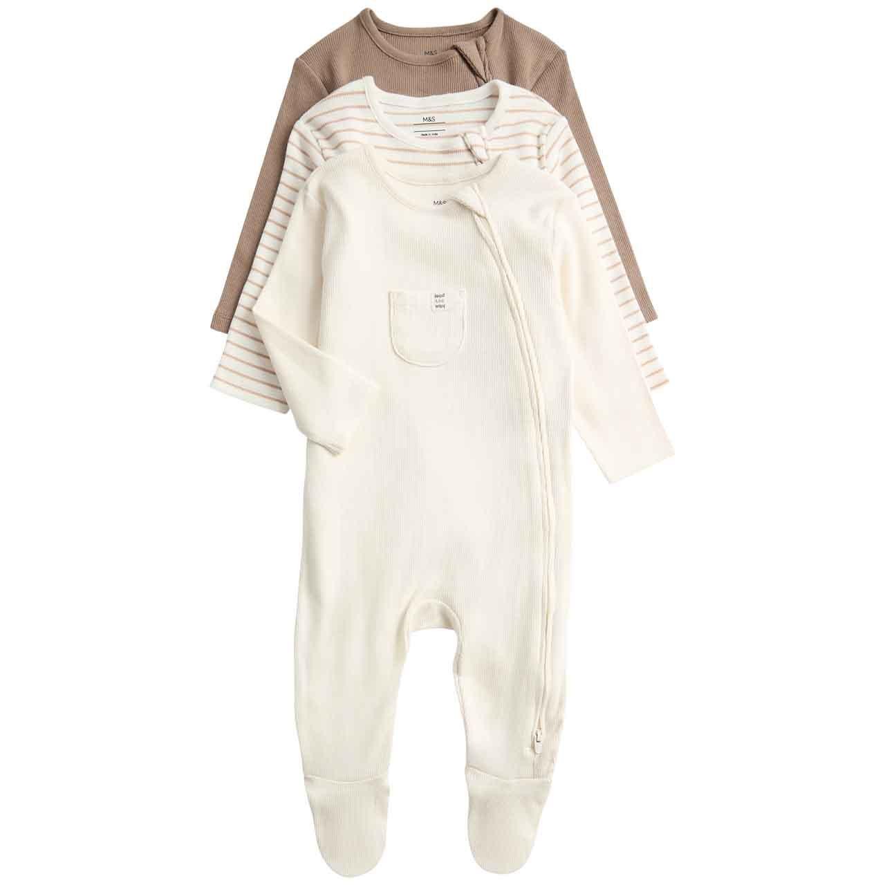These ribbed sleepsuits are constructed from a soft, cotton-rich blend, ideal for comfortable nighttime wear. They feature carefully placed thermal flat seams designed to feel gentle against your baby's delicate skin throughout the night. The material includes added stretch to provide a flexible and non-restrictive fit for active little ones.