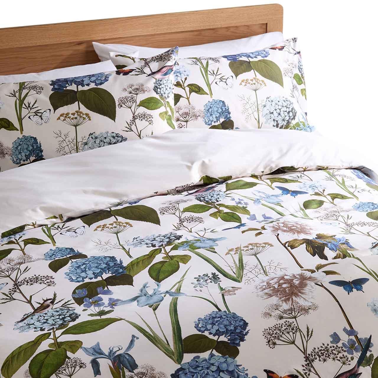 M&S, Pure Cotton Floral Bedding, Set King Size, Blue Mix