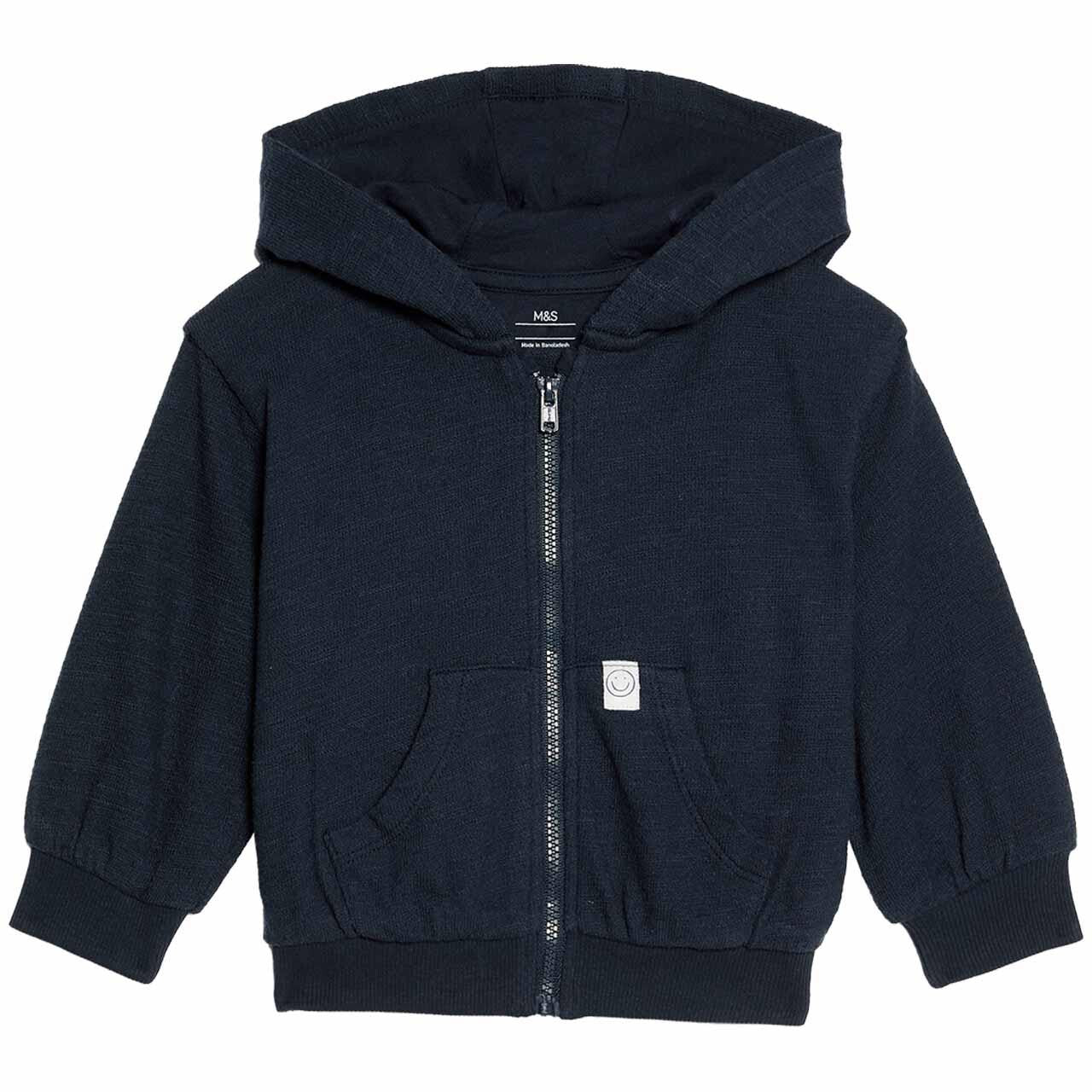 This pure cotton zip hoodie provides a comfortable and versatile extra layer for your little one, suitable for ages 2-3 years. The navy garment is designed for easy dressing, featuring a straightforward zipped style. It offers reliable warmth and softness for everyday activities and play.
