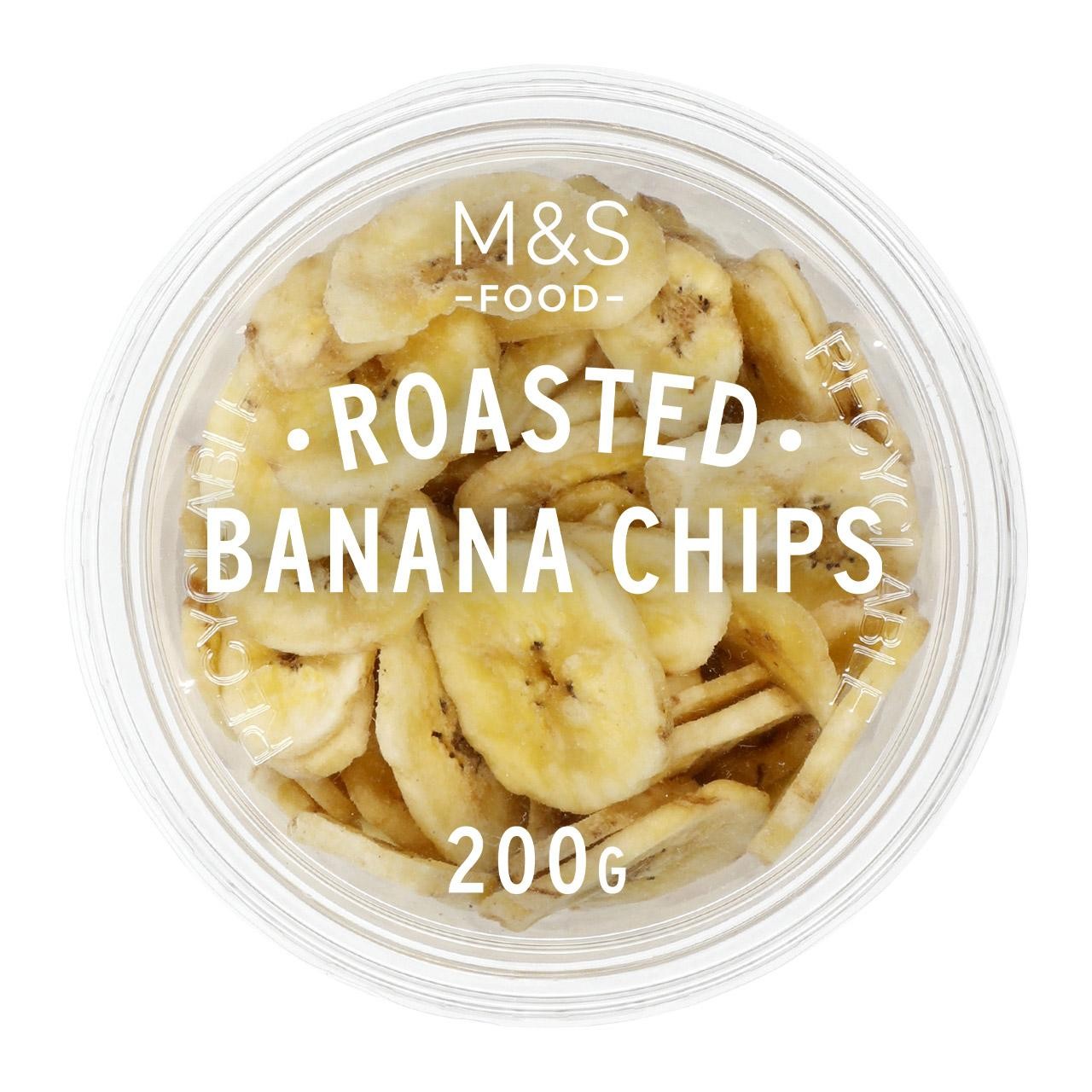 M&S Roasted Banana Chips deliver a light and satisfyingly crunchy texture perfect for enjoying as a treat. These chips are prepared by roasting banana slices, which helps to enhance their natural sweetness and crispness for better flavour.