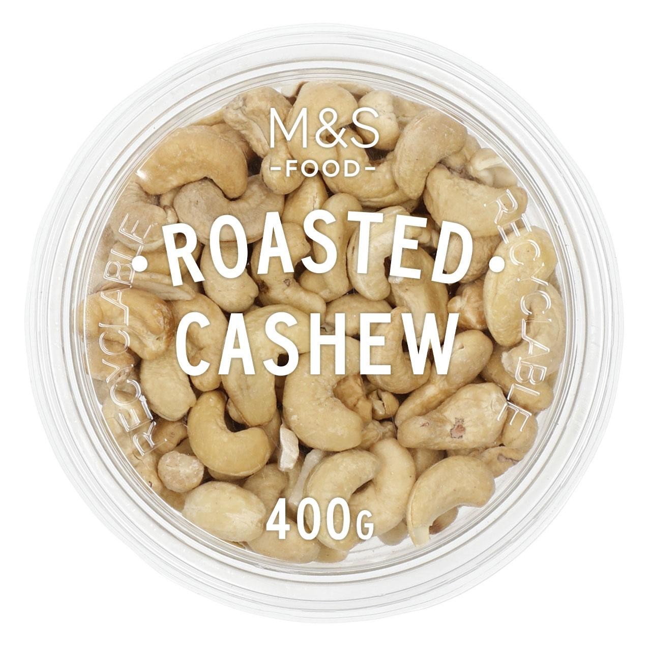 These M&S Food Roasted Cashew Nuts are presented in a convenient 400g resealable pack, ideal for enjoying at home or on the go. The quality cashews are carefully roasted to enhance their natural, buttery flavour profile. This product also maintains a commitment to packaging sustainability, as the outer container is clearly marked as recyclable for mindful disposal.