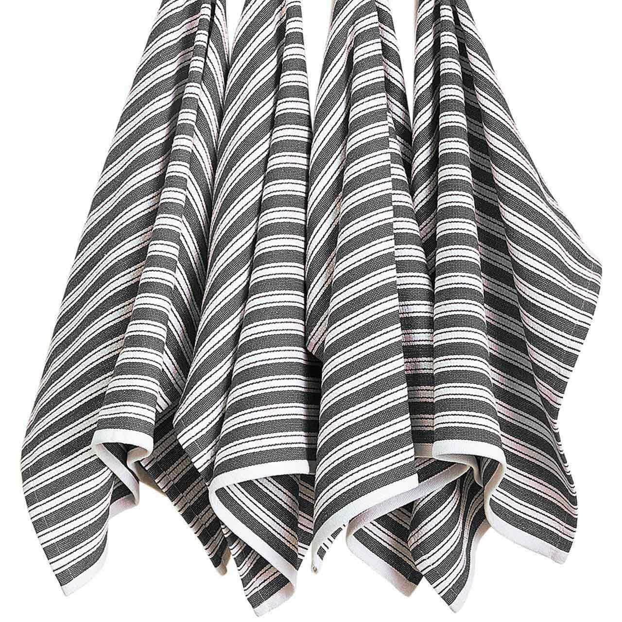 Refresh your kitchen textiles with this classic set of four M&S tea towels featuring a tactile basket weave design in dark grey stripes. These cotton-rich cloths are engineered for durability and efficient daily drying tasks around the home. They offer practical utility while maintaining a timeless look across various kitchen settings.
