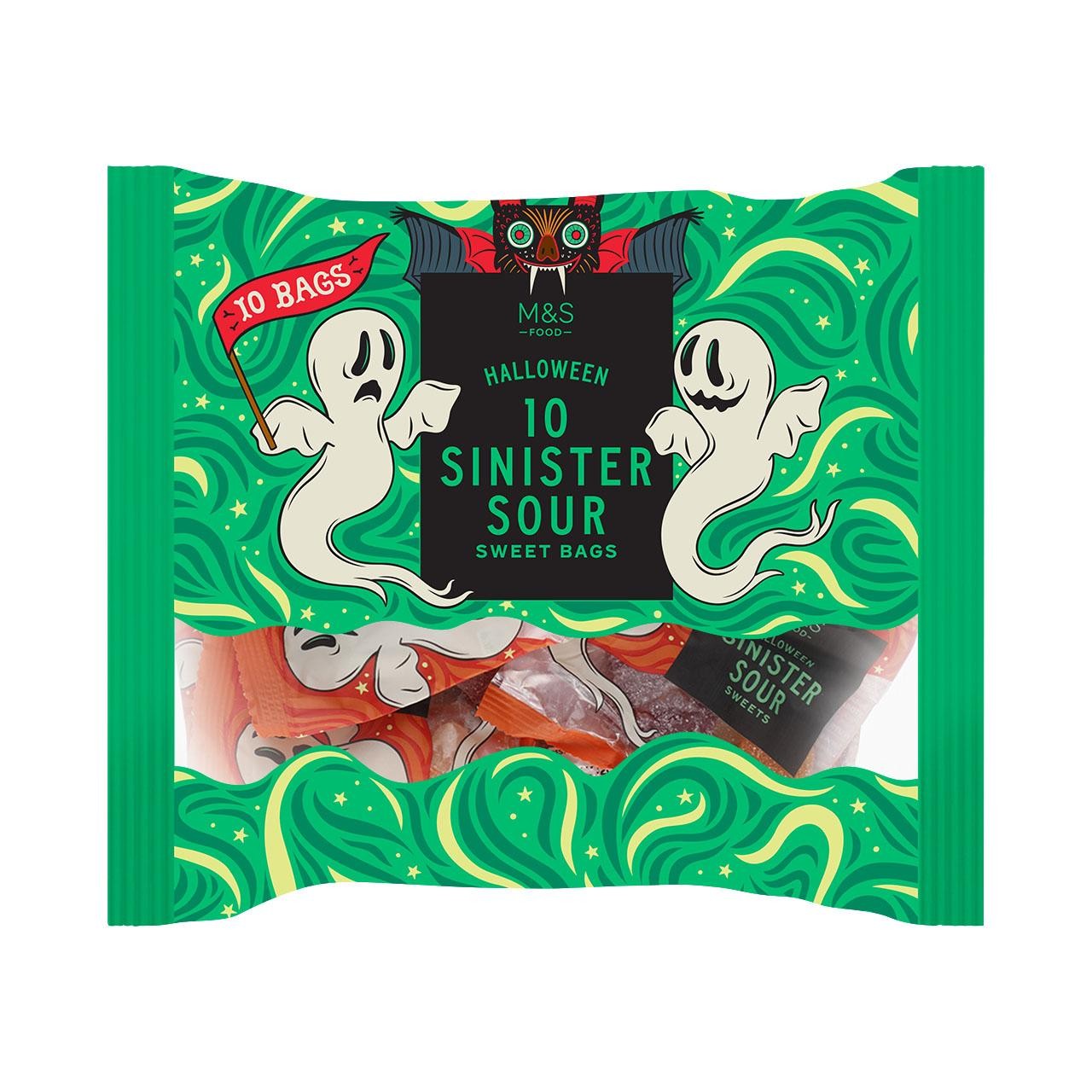 Experience the chilling fun of M&S Sinister Sour Sweets, packaged perfectly for the spooky season. This multipack contains ten individually wrapped portions of sharply flavoured confectionary. The thematic shapes and intense flavour offer a convenient way to share festive treats with family.