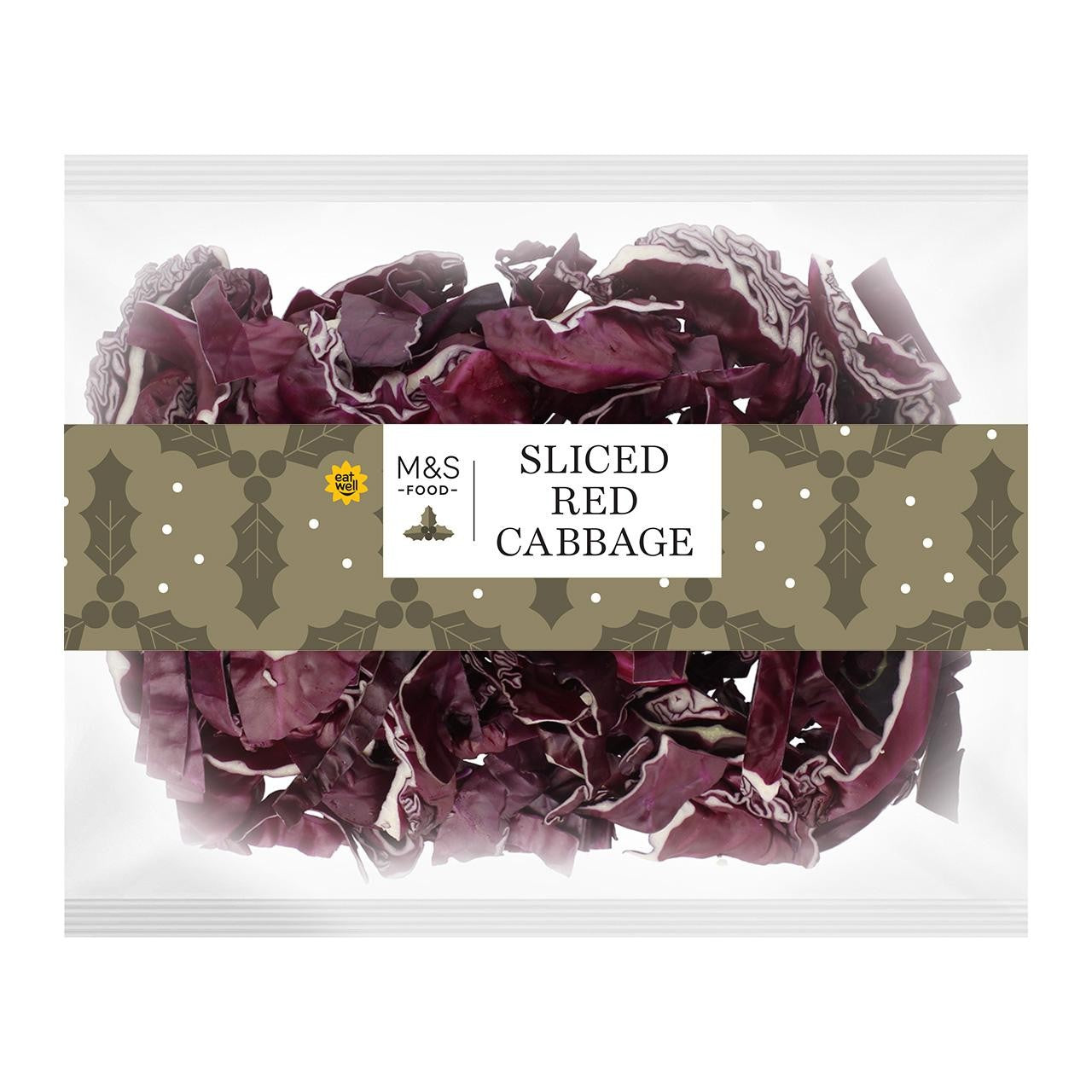 M&S Food offers this convenient package of Sliced Red Cabbage, ready for immediate use in your recipes. This vibrant vegetable is pre-cut to save valuable preparation time in the kitchen, allowing for quick additions to meals. It carries the M&S 'Eat Well' endorsement, suggesting alignment with healthier meal choices.