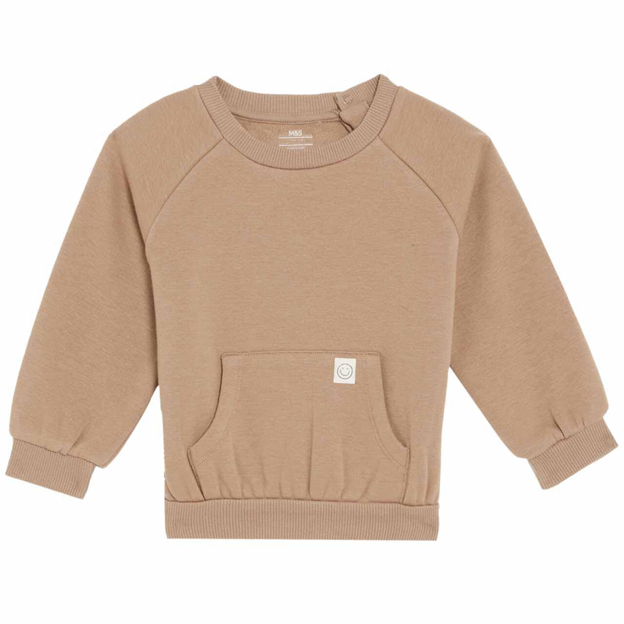 This cosy marl cotton-blend sweatshirt provides essential warmth for infants during cooler days. It is designed with comfort and practicality in mind for both baby and parent.