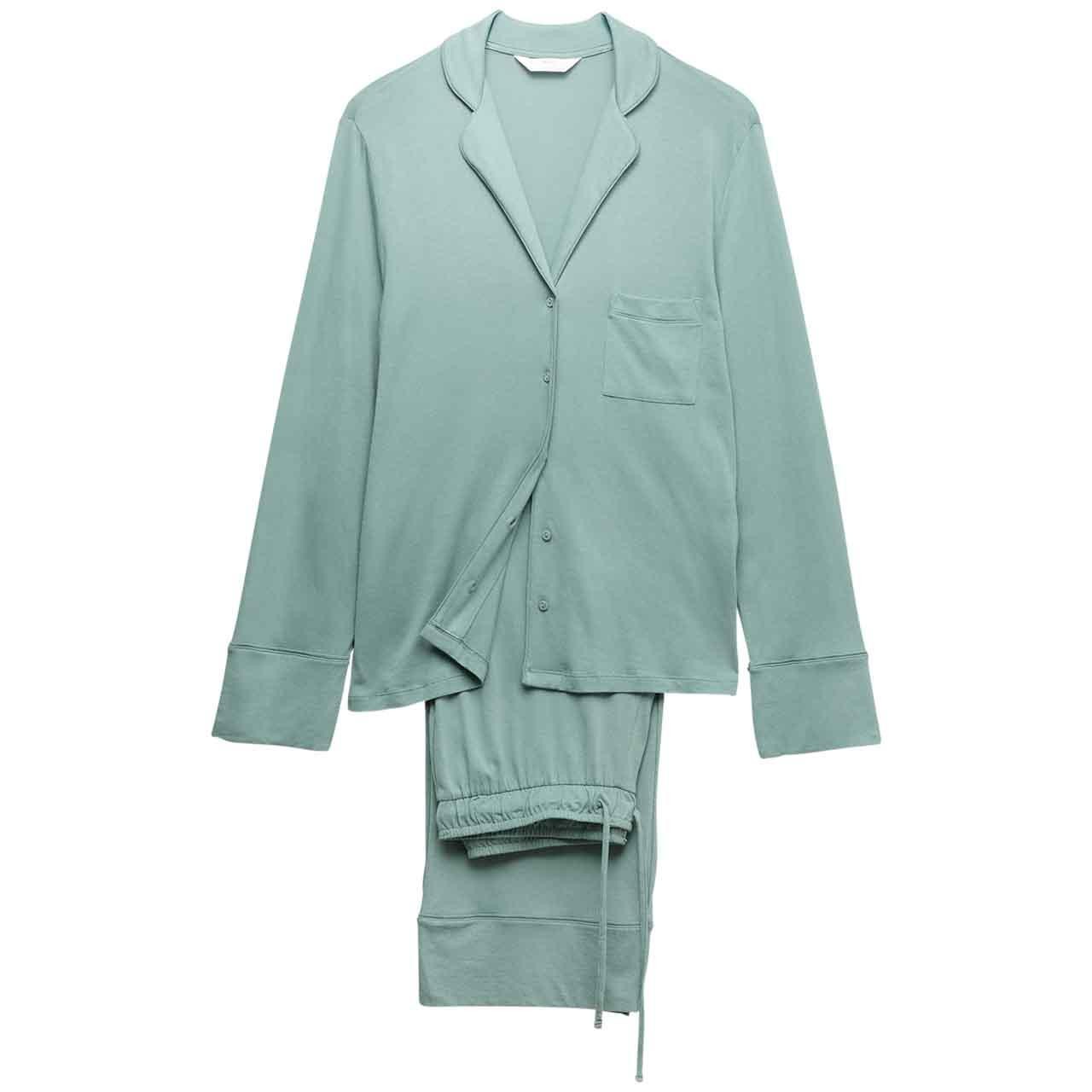 M&S Womens Cotton Modal Revere Pyjama Set, M, Green