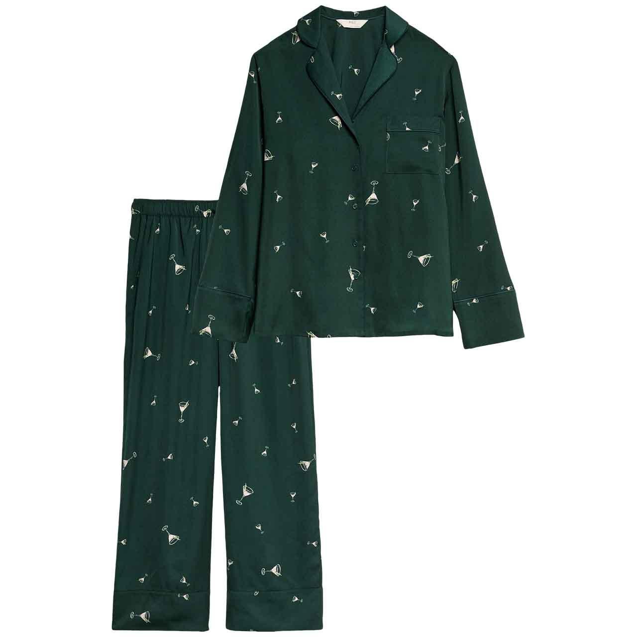 This M&S Dream Pyjama Set offers elegant comfort crafted from smooth polyester satin. The set features an eye-catching cocktail print across the entire design, perfect for relaxed evening wear or stylish lounging at home. Enjoy the luxurious feel and thoughtful construction of this two-piece sleepwear collection.