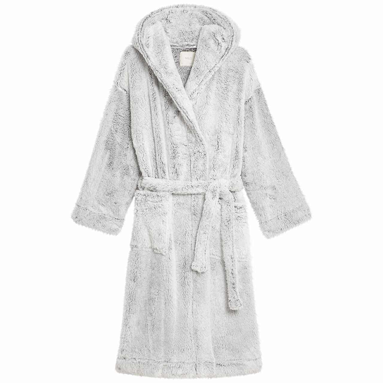 M&S Womens Fleece Hooded Dressing Gown, S, Grey