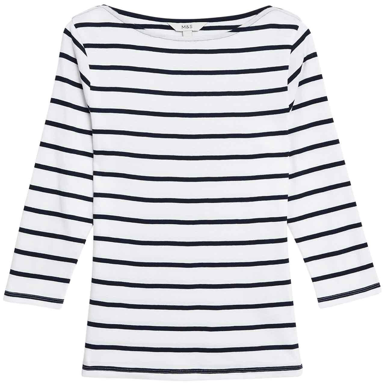 This M&S striped top is crafted from pure cotton, ensuring a naturally breathable feel suitable for everyday wear. It is cut for a modern slim fit, providing a comfortable silhouette that flatters the figure. The design incorporates several thoughtful details for easy styling throughout the year.