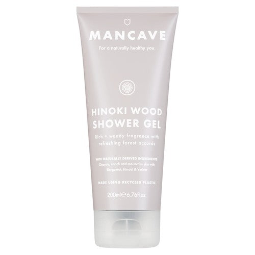 ManCave Hinoki Wood Shower Gel gently cleanses skin while invigorating the senses with Hinoki Cypress Oil & woody notes of Cedar, Musk & Vetiver.
