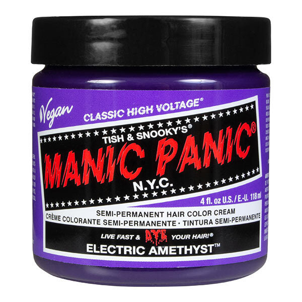 Read MoreManic Panic High Voltage Classic Hair Colour in Electric Amethyst. Bright hair colour at its best, this iconic formula is semi-permanent, vegan and cruelty-free.