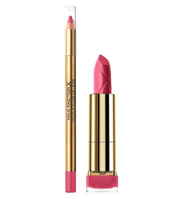 This Max Factor bundle combines a Colour Elixir Lipstick and a matching Lip Liner in the shade Dusky Pink. This duo is designed to provide definition and rich colour payoff for a complete lip look. The elegant packaging features gold accents, complementing the perfectly coordinated pink shades inside.