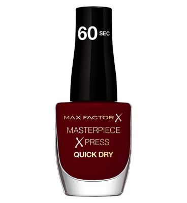 Achieve a flawlessly finished manicure in just one minute with Max Factor Masterpiece Xpress nail polish in Mellow Merlot. This formula is engineered for efficiency, allowing you to transition quickly from painting to daily activities without smudging concerns. Enjoy high-impact colour coupled with rapid performance from a trusted beauty brand.