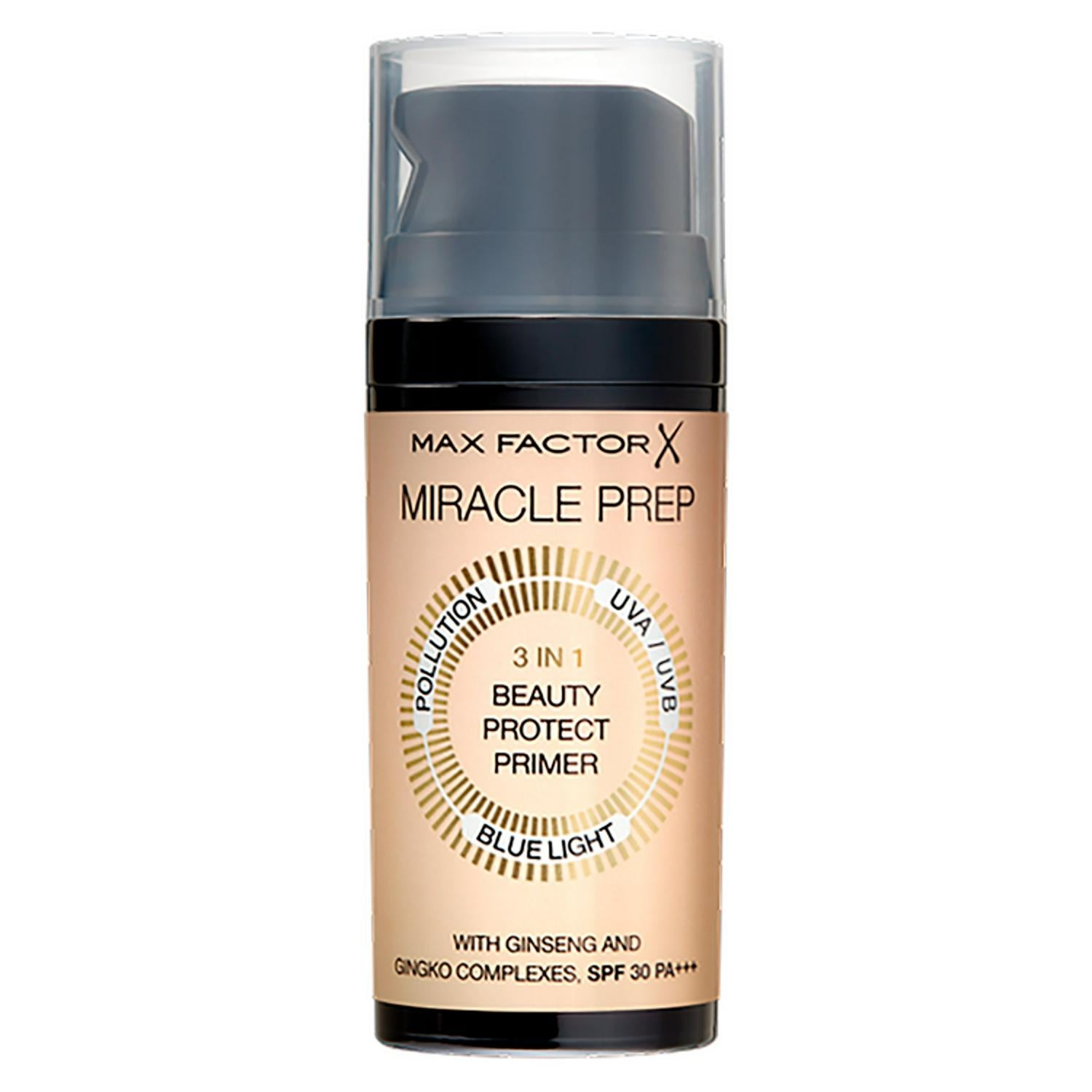 This Max Factor Miracle Prep 3 in 1 product acts as a protective base layer for your daily make-up routine. It is specifically formulated to prime the skin while helping to extend the wear time of your foundation throughout the day. This multi-tasking product is suitable for all skin types, including sensitive complexions.