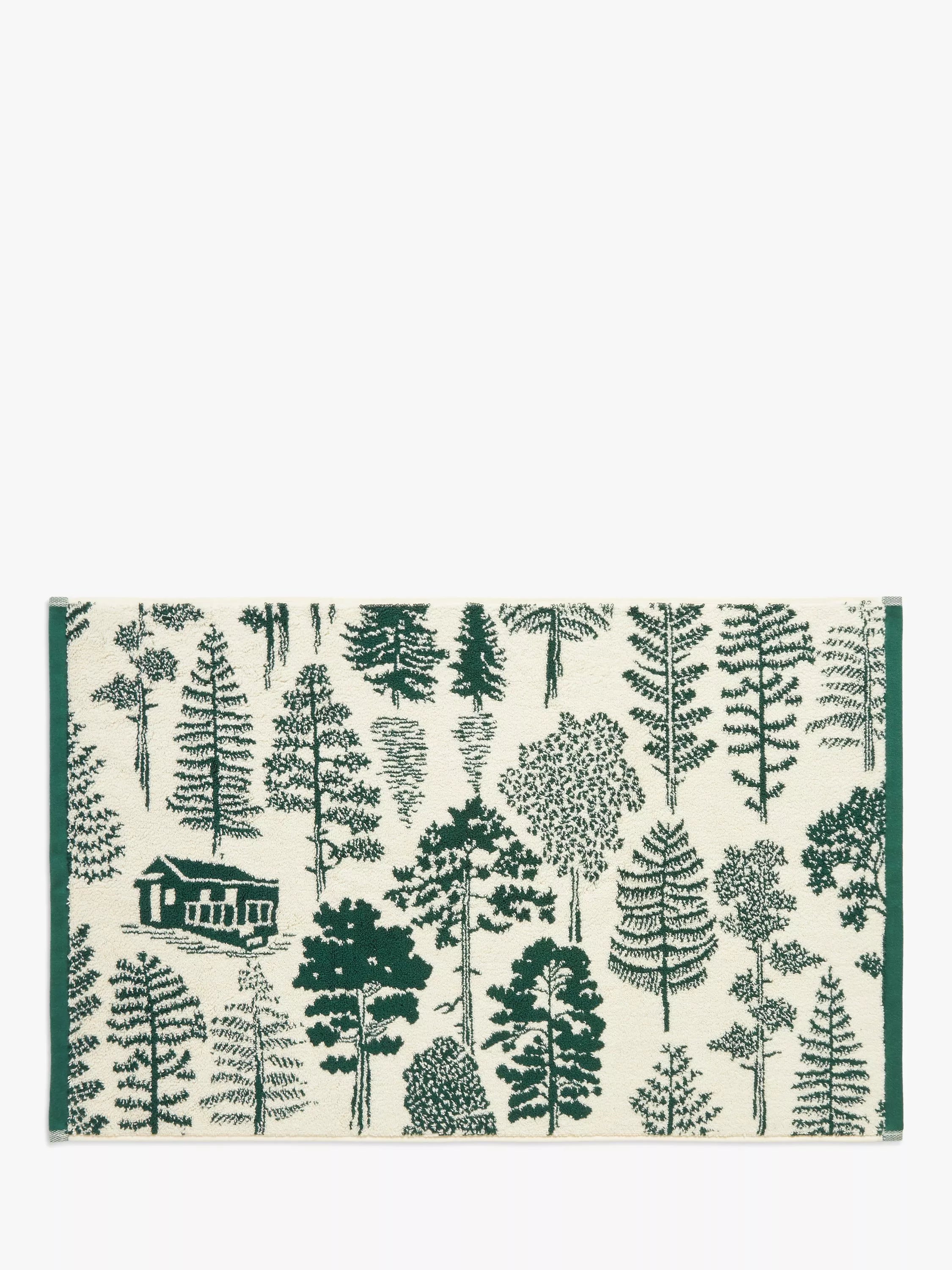 In 100% cotton for a thick pile, this bath mat comes with a wintery, cabin-scene design.