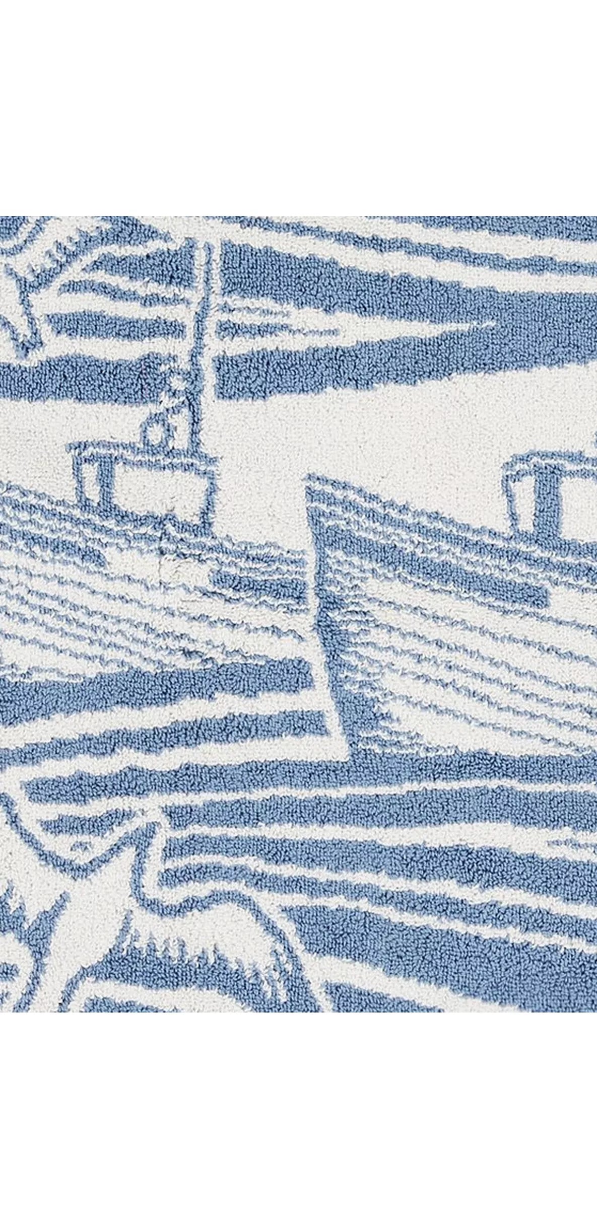 Inspired by 1950s linocuts, the bold wave motif of the Mini Moderns Whitby design captures the majesty of the open sea.
