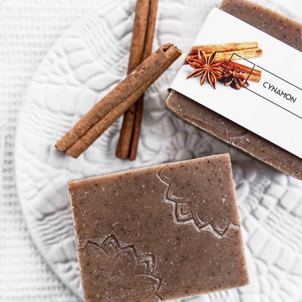 This Ministerstwo soap is a naturally derived, handcrafted bar formulated for effective cleansing. It incorporates finely ground cinnamon, offering a sweet and spicy sensory experience during use.