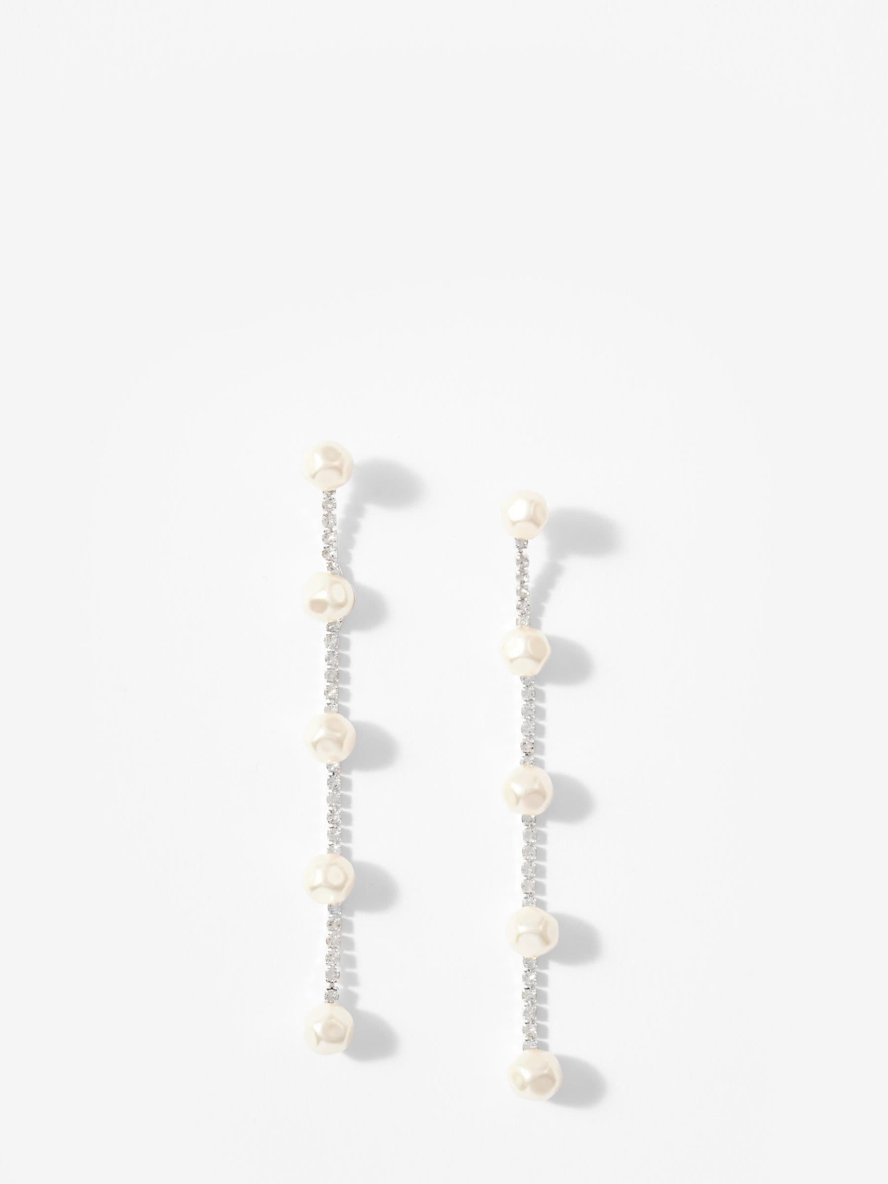 Silver-tone diamanté and pearl drop earrings featuring a clasp fastening.