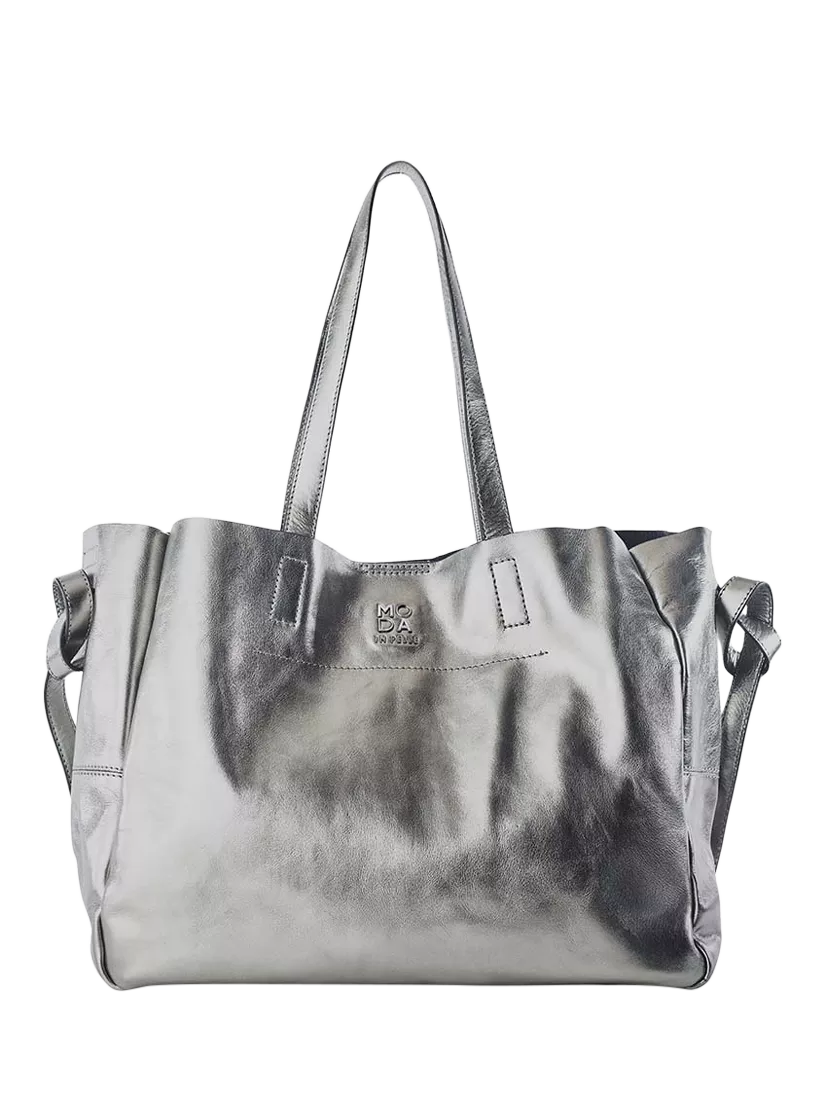 The season's must-have tote, this Indiana bag from Moda in Pelle has a beautiful soft pebbled leather finish, perfect for all year round. Wear the double straps over the shoulder, on the arm, or carry them as a grab bag.