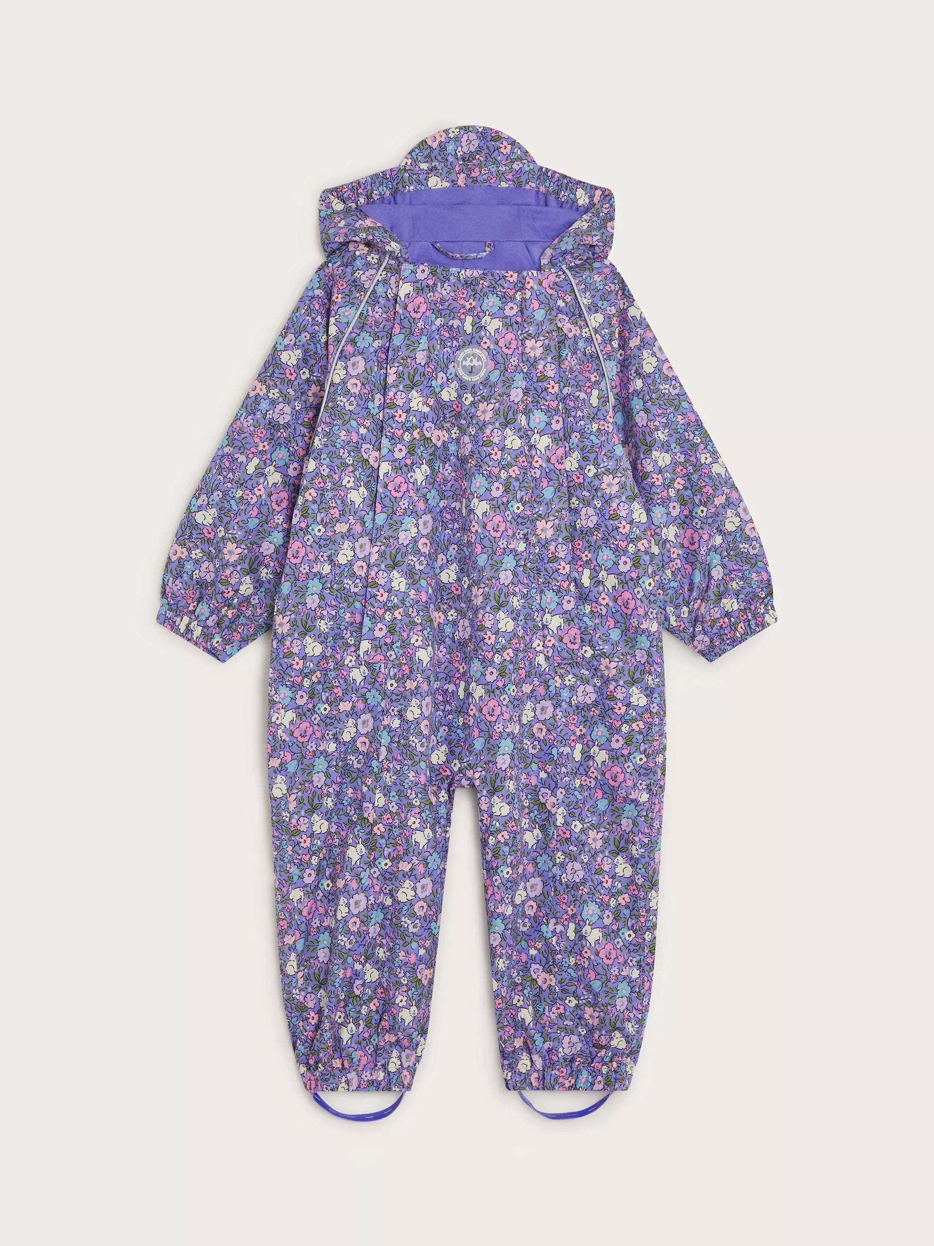 When they're ready to explore in a rain shower or jump around in puddles, layer this water-resistant puddle suit over their outfit to keep them dry. Designed with a pretty ditsy floral print, it has a hood, elasticated cuffs and stirrups for extra support. Plus, reflective strips so they stay visible and a soft, cotton blend lining.