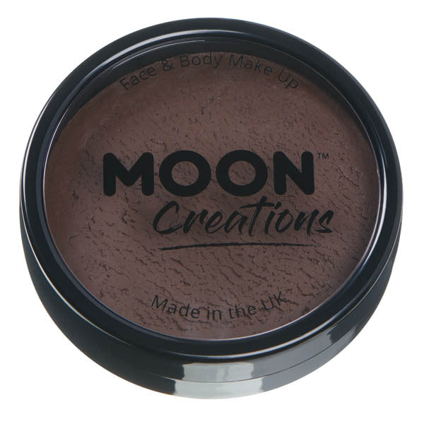 Unleash your artistic vision using Moon Creations Pro Face Paint Cake Pots. Simply add a small amount of water to activate the makeup cake using a brush or sponge. This versatile dark brown formulation is suitable for enthusiasts, professionals, children, and adults alike.