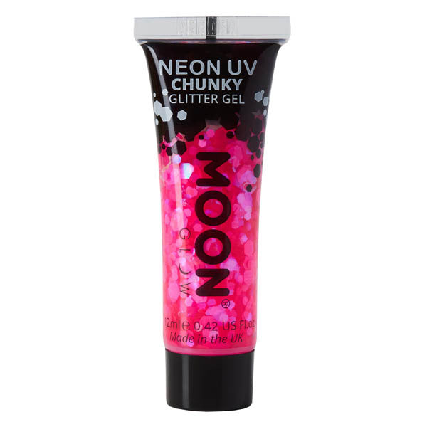 Create stunning effects on the face and body using Moon Glow face and body glitter gels. Bright, neon coloured in natural lighting, these paints fluoresce spectacularly under UV Lighting/Blacklights, producing an incredible UV Glow glitter effect. The unique flake free and smudge resistant formula ensures your designs will last all night! Perfect for clubbing, parties, festivals, UV sports, stage performances and anywhere with UV Lighting. To use, simply remove the foil tip and apply to skin using fingers, a brush or sponge. Avoid Contact with eyes. Add more layers (once dry) to increase the effect under UV. After use, simply remove using soap and water. All Moon Glow cosmetic and special effect products are proudly made in the UK. Dermatologically tested, cosmetically certified and conforms to EU1223/2009. Moon Glow products are not tested on animals.