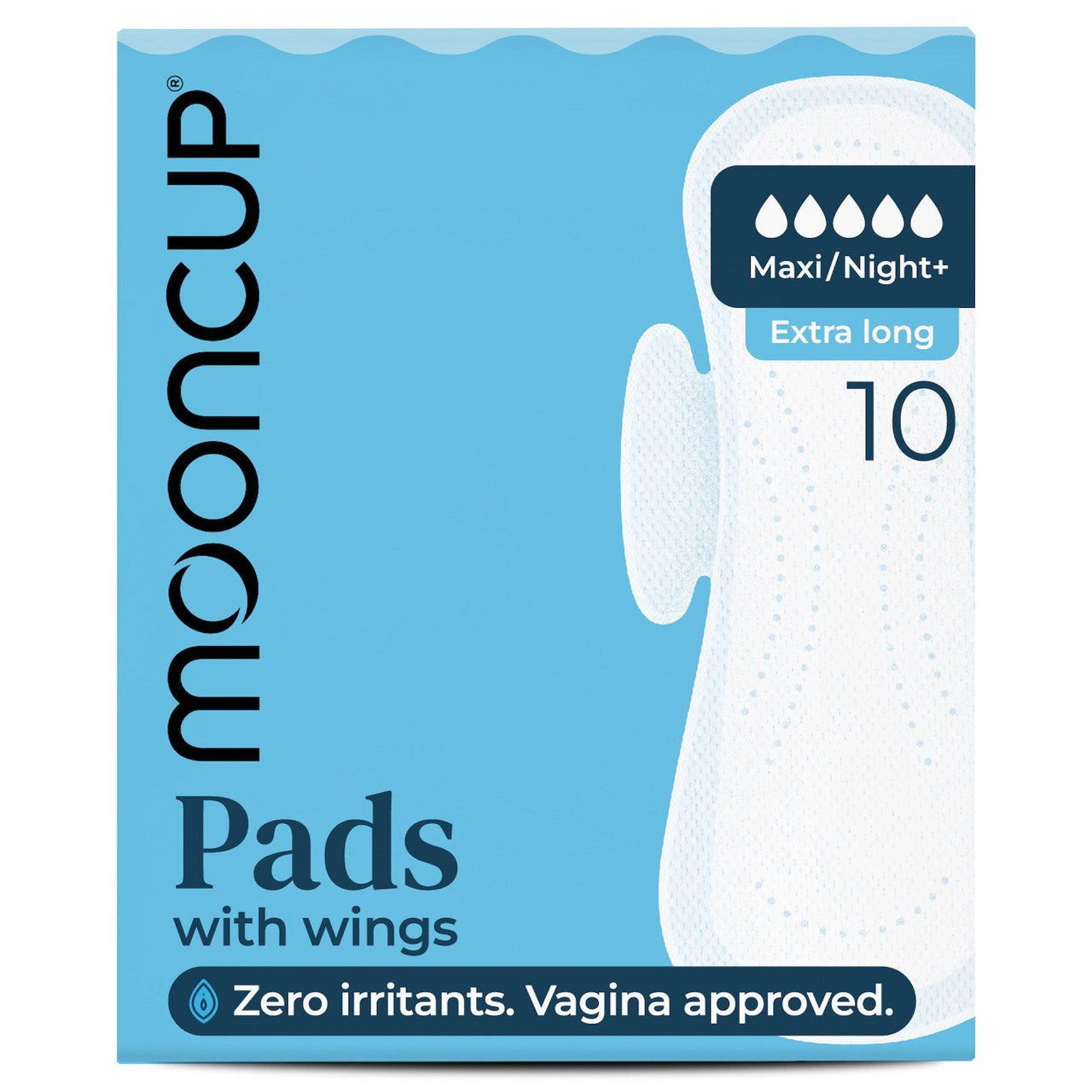 Mooncup Maxi Night+ Pads provide reliable, extra-long protection equivalent in absorbency to leading brands for secure overnight use. These pads are specifically engineered without common irritants, offering a cleaner choice for comfortable nightly wear.