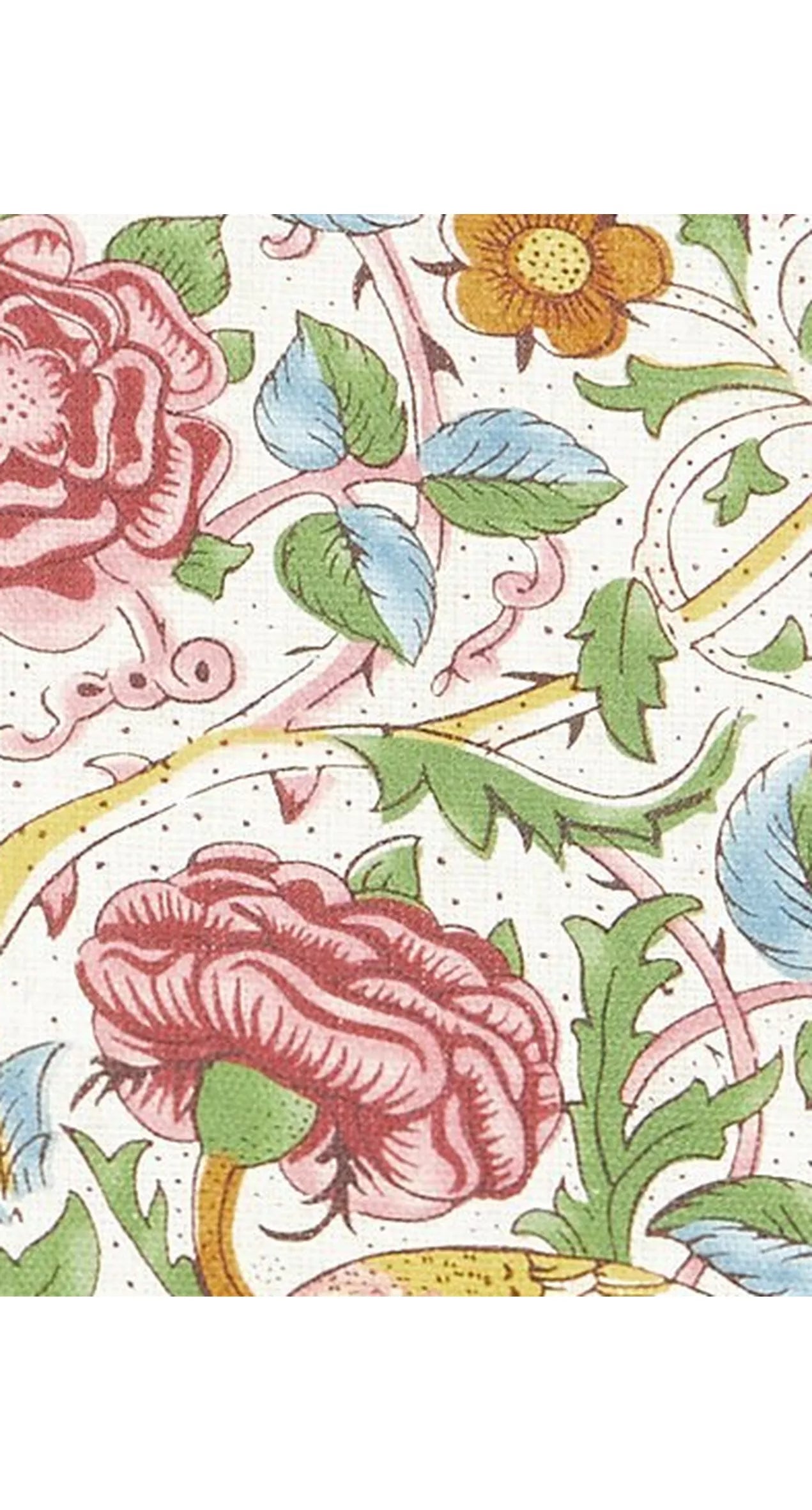 William Morris's close observation of nature's everyday dramas is evidenced here in the pair of cheerful birds that play among the thicket. Originally designed by Morris as a furnishing fabric in 1883, Rose was widely used in the drawing room of Sir Emery Walker, the noted typographer and friend of Morris.