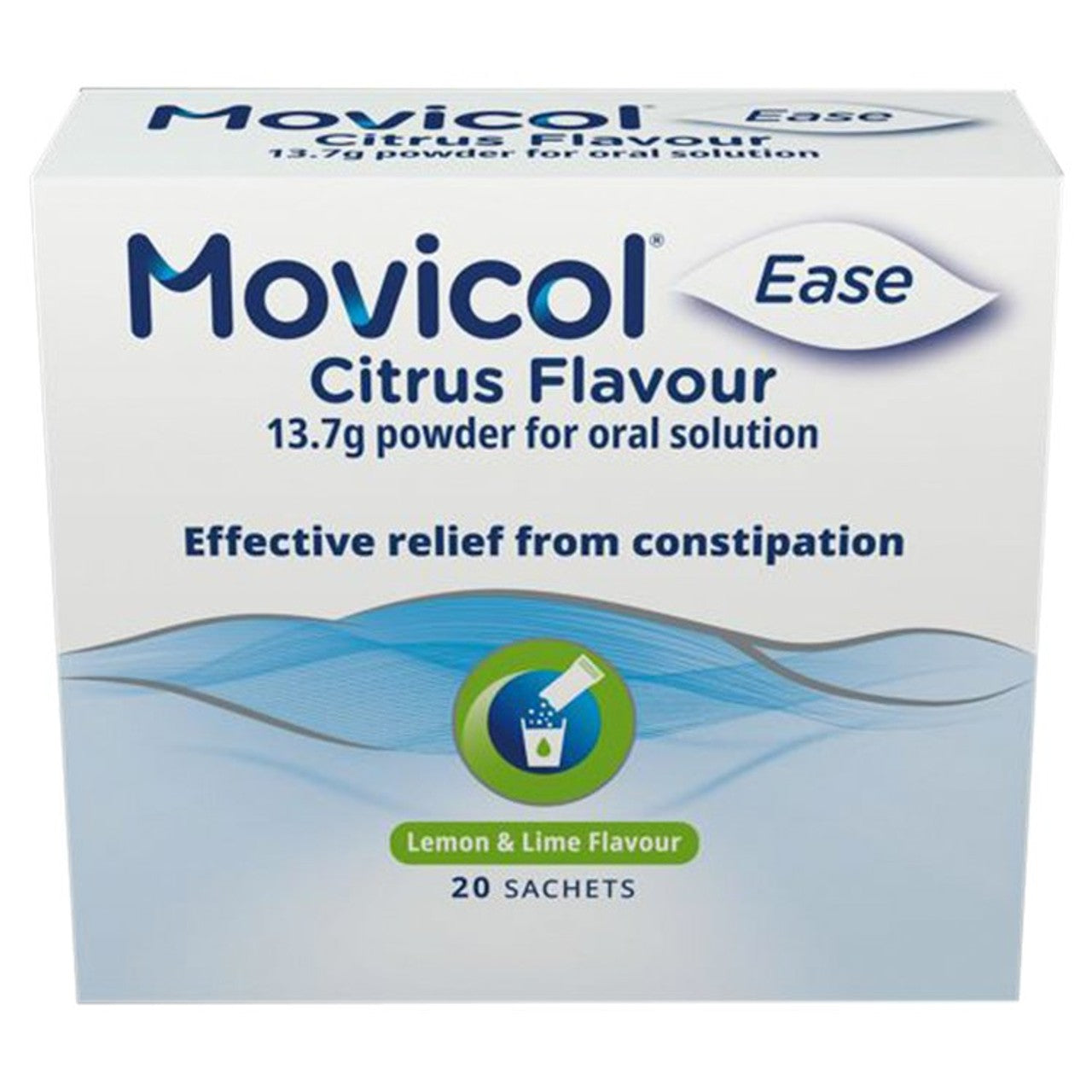 Movicol Ease Citrus Flavour provides effective relief for occasional constipation. This product functions as an osmotic laxative, helping to gently regulate bowel movements. It is supplied in a convenient format designed for ease of use when required.
