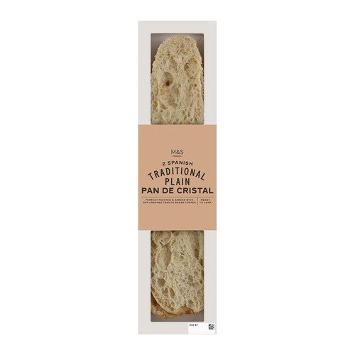 Our Spanish Traditional Plain Pan De Cristal is a light, crisp bread perfect for toasting and topping with our crushed tomato bread topper. Made with wheat flour and malted barley flour, these two ready-to-cook loaves bring authentic flavour and crunch to your table.