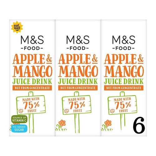 This M&S Apple & Mango Juice Drink offers a refreshing blend of fruit and water. It is carefully crafted using a high concentration of fruit content for natural flavour.