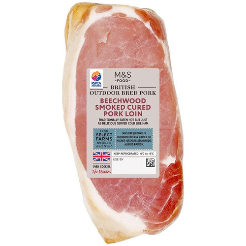 Read MoreM&S Select Farms British Smoked Cured Pork Loin Outdoor-bred British pork loin joint cured and smoked over beech wood chips. Simply roast in the oven. Best served warm, but equally as delicious eaten cold.