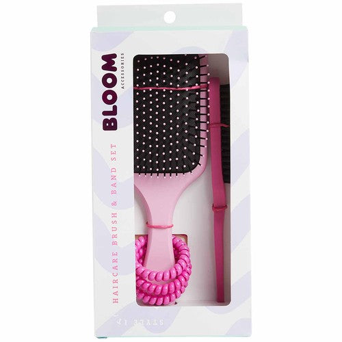 This MS Bloom Accessories Haircare Brush and Band Set provides the necessary tools for various styling needs. It is an essential collection for creating everything from sleek ponytails to achieving your standard daily look. The included components work together to offer both effective smoothing and gentle securing options.