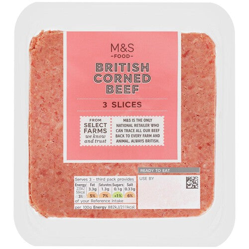 Tender slices of hearty corned beef are crafted using beef sourced exclusively from M&S Select Farms. This ready-to-eat meat simplifies building satisfying lunchtime options very quickly. It serves as a dependable base for classic sandwich fillings with reliable flavour.