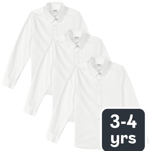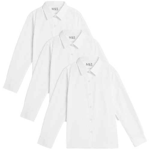 These M&S blouses come in a convenient three-pack, designed as a staple for school time. They feature technology to reduce ironing time, making laundry simpler for busy parents. The slim fit offers a modern, narrower cut that sits closer to the body.