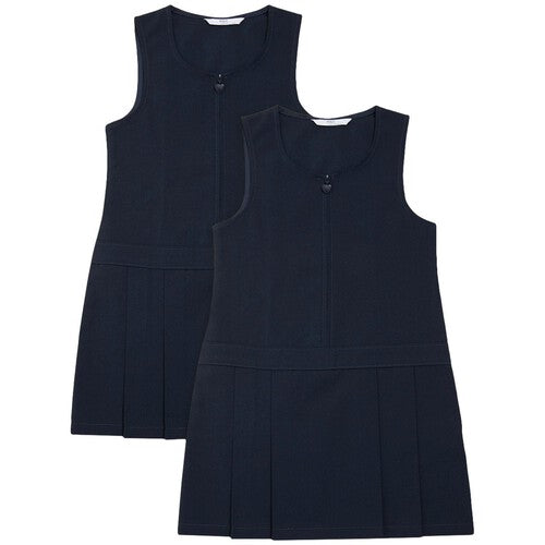 This M&S two-pack of school pinafores offers both lasting comfort and practical functionality for daily wear. Designed for easy use, they feature a front zip closure detailed with a decorative butterfly puller for simple dressing.