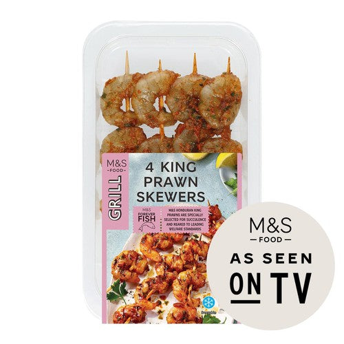 Prepare for your next outdoor meal with these M&S Grill King Prawn Skewers.